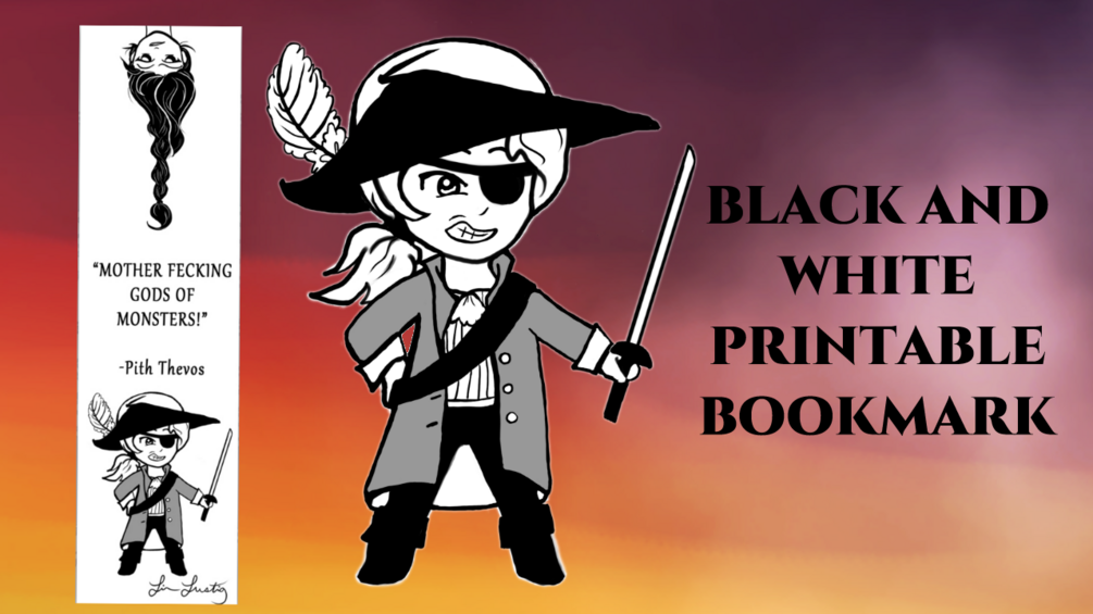 A printable bookmark with character art of Pith and Blackbraid from Our Ship Must Sail.